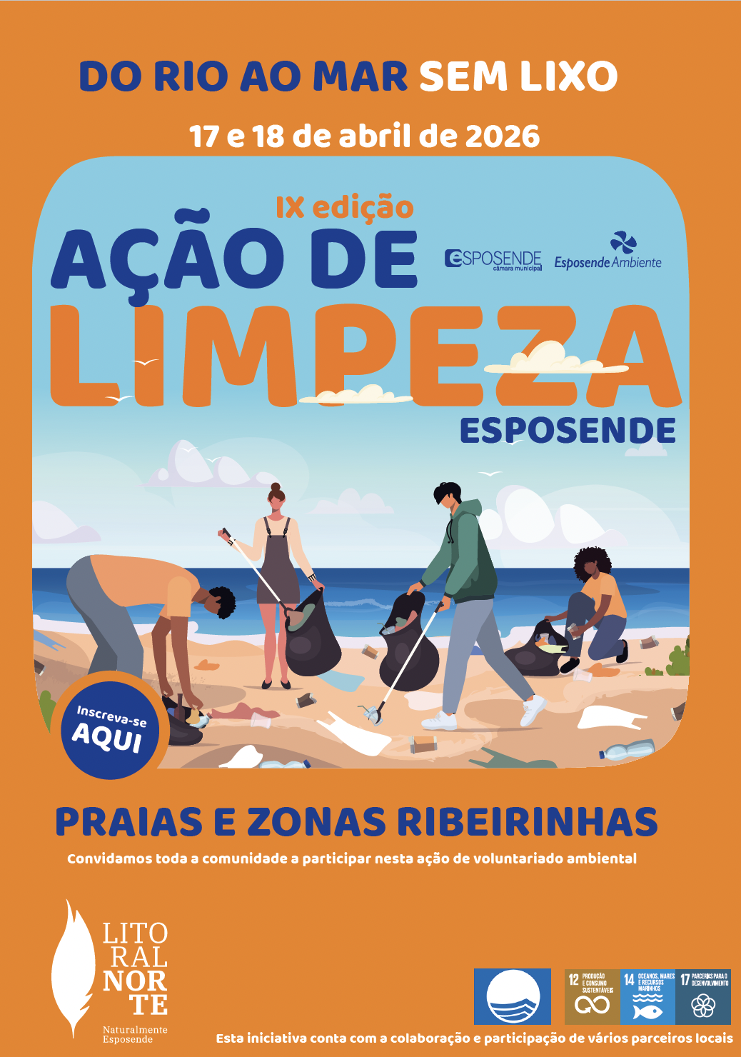 O Município de Esposende e a Esposende Ambiente promovem, nos dias 17 e 18 de abril de 2026, a IX edição da ação de voluntariado ambiental “Do Rio ao Mar Sem Lixo”, convidando toda a comunidade a participar numa iniciativa de limpeza de praias e zonas ribeirinhas do concelho.